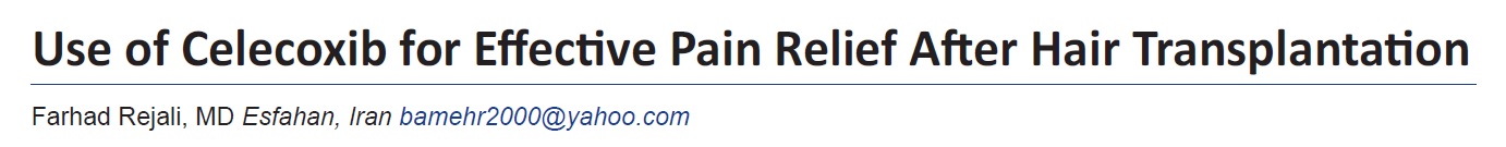 모발이식 환자에서 세레콕시브의 효과를 연구한 내용이 있습니다. 50명의 환자는 아세트아미노펜+코데인, 50명의 환자는 세레콕시브를 처방해서 통증 정도를 비교하였습니다. 아세트아미노펜+코데인 군에서는 심한 통증을 느낀 환자의 비율이 22%였던데 반해 세레콕시브 군에서는 10%였습니다.