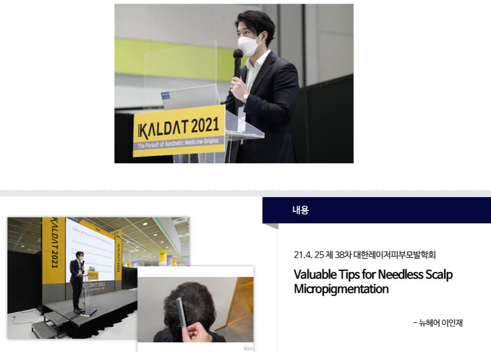 이인재 원장님께서는 세계 최초로 저희가 개발 도입하여 계속 발전시켜나가고 있는 무바늘 레이저 두피문신(Needless SMP)에 대한 전반적인 내용과 최근 업그레이드된 부분을 설명드리고 사례를 영상으로 보여드렸습니다.