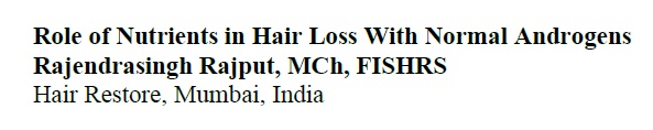 최근 라즈풋(Dr. Rajput)이라는 의사도 탈모에 있어서 적절한 영양소의 보충의 중요성에 대해 발표한 적이 있습니다. 자신의 치료 사례들을 예로 보여주었는데 영양 보충만으로도 꽤 좋은 결과를 보여주었습니다.