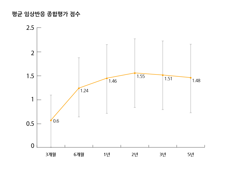 다른 연구와 마찬가지로 탈모약을 장기간 복용해도 개선 효과가 꾸준히 유지된다는 점을 확인할 수 있습니다. 그리고 치료를 시작할 때 탈모 증상이 심하지 않았던 분들이 더 좋은 효과를 보았습니다.